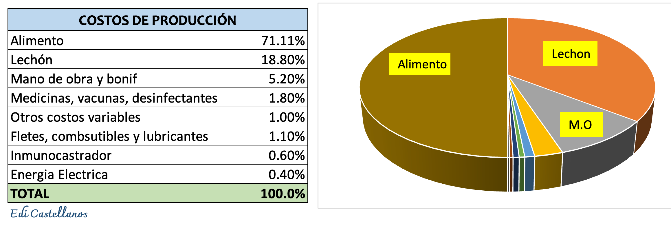 Al destetar más lechones por cerda el costo se diluye dando como resultado un costo más competitivo. No debemos perder de vista que en la estructura de costos después del alimento es el costo del lechón destetado el que ocupa el segundo lugar en orden de importancia.